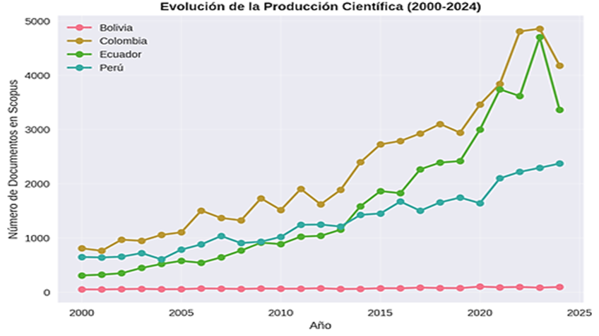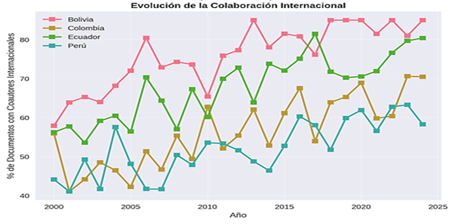 in Latin America, particularly in Andean countries. This study analyzes scientific collaboration trends and co-authorship networks in Bolivia, Colombia, Ecuador, and Peru during the