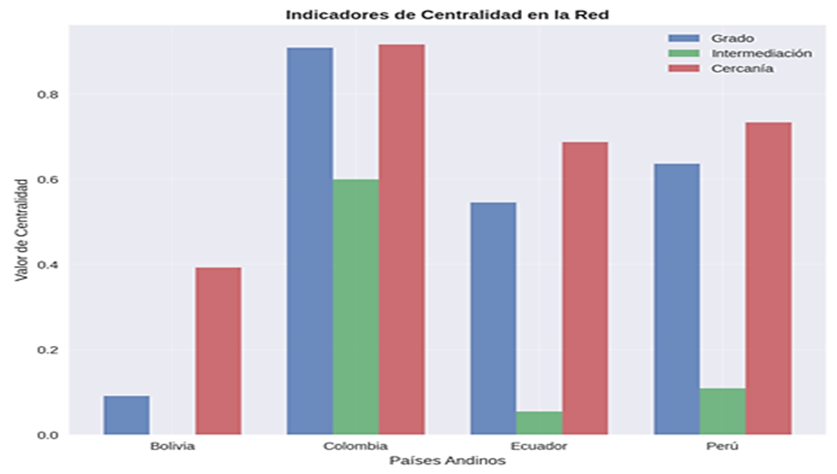 (0.636) and Ecuador (0.545), while Bolivia faces significant challenges in its integration into international scientific networks. These findings contribute to understanding