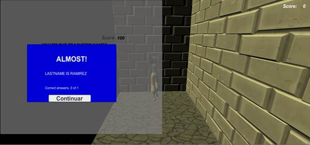 Antes de las muestras aquí desplegadas, se realizaron algunas pruebas piloto, con las que se logró probar algunos diseños motivacionales con buena recepción por parte de estudiantes y padres de familia. Pese a la falta de elementos básicos para una clase virtual, los primeros videos grabados y las entrevistas efectuadas nos dan mucha información que permite desarrollar, en el futuro, la simbología apropiada para usar durante el registro en este tipo de investigación. En medio de estas fases, estuvo en proceso la creación y aplicación del video juego “Desafío San Buenaventura” el cual fue diseñado por el estudiante de sistemas Nelson Zambrano y el profesor Edgar Ramírez Ramírez, autor de este trabajo. (Figura 1) El vídeo juego ha sido creado en la plataforma Unity versión 2018.4.15fs; inicialmente, se comenzó a trabajar en red con computadores, en la institución, pero debido a la emergencia se le están haciendo modificaciones para trabajar de manera online. (Se presentan algunos ejemplos de la interfaz).